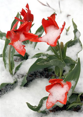 R.E. Sanders Co. was back on Tuesday to effect repairs on the several broken water lines, and spent the day re-plumbing the pumphouse, office bathroom and Main GH. Arthur was in for a half-day, to help me with some small projects. Snow squalls moved through the area all day; it was nice to see the snow without the accumulation, plowing or shoveling.