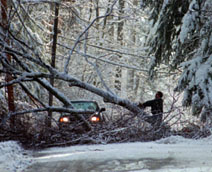 The sleet and ice is falling at a furious rate now. We may actually get part of what the weather forecasters are calling for by tomorrow morning. We're at 4" (I'm at home by now) of wet, heavy snow and still coming down, then changing over to sleet and ice. Almost any amount of snow is manageable; ice is a very different story.