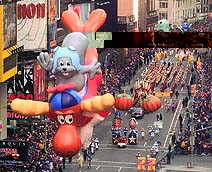 Gowing up in the midwest, I didn't have a snowball's chance in hell of ever seeing the Macy's Thanksgiving Day Parade live, but I watched all or some of it on TV every year. The floats look big on the tube, and from firsthand experience, I can tell you they are very, very damn big! When a gust of wind comes along, as often happens in those glass canyons, it's all those people on the guide wires can do to hold a 150-million-cubic-foot-of-helium-float from ending up in the stratosphere. I've seen some of those guys go for real short rides — just before they let go of the rope. Wow! What a ride down! I'll stay down here, thanks.